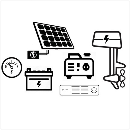batterier | solpanel och regulator | laddare/likriktare | solpanel och regulator |